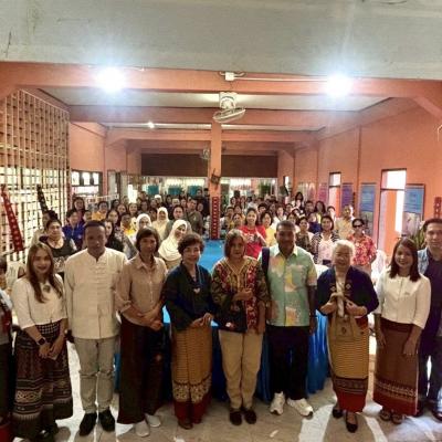นางสุรียพรรณ์ ณ สงขลา ผู้เชี่ยวชาญพิเศษด้านการวางแผนยุทธศาสตร์และแผนพัฒนาท้องถิ่น อบจ.สงขลา พร้อมด้วย นายกิตติศักดิ์ ทองสุวรรณ์ หัวหน้าฝ่ายพัฒนาชุมชน กองสวัสดิการสังคม อบจ.สงขลา และนางบำเพ็ญ จันทร์กุบ ผอ.กลุ่มงานยุทธศาสตร์การพัฒนาชุมชน สนง.พัฒนาชุมชนจังหวัดสงขลา นำคณะศึกษาดูงาน ณ ศูนย์เรียนรู้ผ้าจกโหล่งลี้บ้านปวงคำ อำเภอลี้ จังหวัดลำพูน