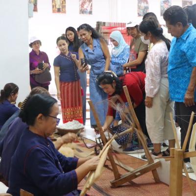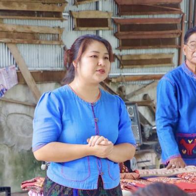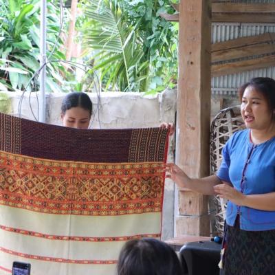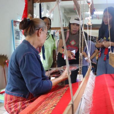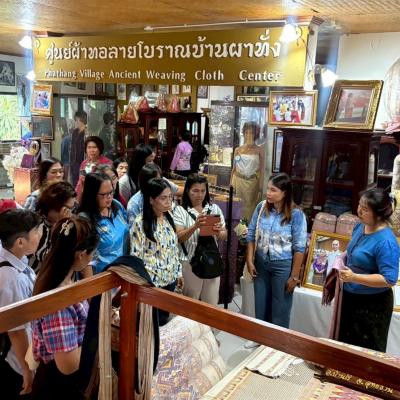 โดยมี นางสาวยลดา ภูริผล ประธานกลุ่มผ้าทอลายโบราณบ้านผาทั่ง และ นางสาวสิริรักษ์ เกริงรัมย์ รองประธานกลุ่มผ้าทอลายโบราณบ้านผาทั่ง // เป็นวิทยากรบรรยายให้ความรู้