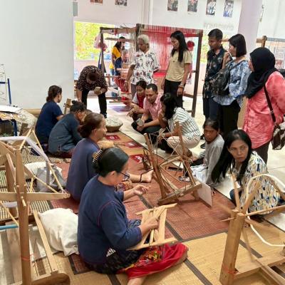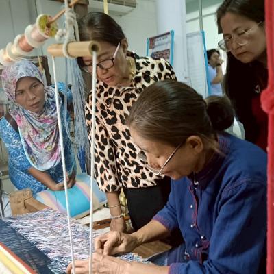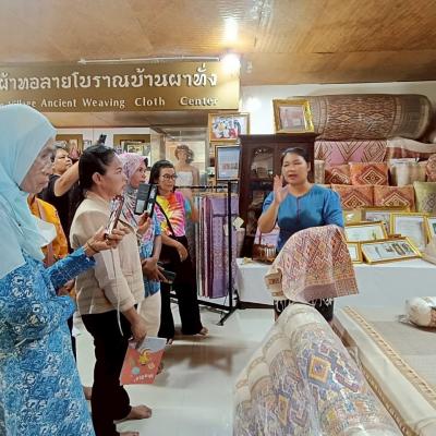 นางสุรียพรรณ์ ณ สงขลา ผู้เชี่ยวชาญพิเศษด้านการวางแผนยุทธศาสตร์และแผนพัฒนาท้องถิ่น อบจ.สงขลา พร้อมด้วย นายกิตติศักดิ์ ทองสุวรรณ์ หัวหน้าฝ่ายพัฒนาชุมชน กองสวัสดิการสังคม อบจ.สงขลา และนางบำเพ็ญ จันทร์กุบ ผู้อำนวยการกลุ่มงานยุทธศาสตร์การพัฒนาชุมชน สนง.พัฒนาชุมชน จ.สงขลา นำคณะผู้ประกอบการโอทอปประเภทผ้าในพื้นที่จังหวัดสงขลา เจ้าหน้าที่ อบจ.สงขลา เจ้าหน้าที่สำนักงานพัฒนาชุมชนจังหวัดสงขลา เจ้าหน้าที่สำนักงานพัฒนาชุมชนอำเภอ และคณาจารย์ผู้เชี่ยวชาญจากสถาบันการศึกษาในจังหวัดสงขลา ศึกษาดูงาน ณ ศูนย์ผ้าทอลายโบราณบ้านผาทั่ง อำเภอบ้านไร่ จังหวัดอุทัยธานี
