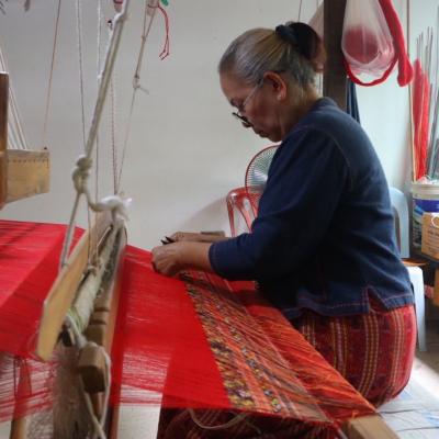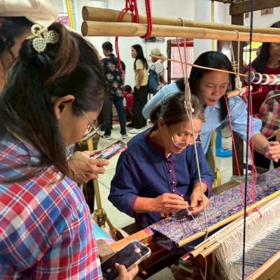 ณ ศูนย์ผ้าทอลายโบราณบ้านผาทั่ง อำเภอบ้านไร่ จังหวัดอุทัยธานี