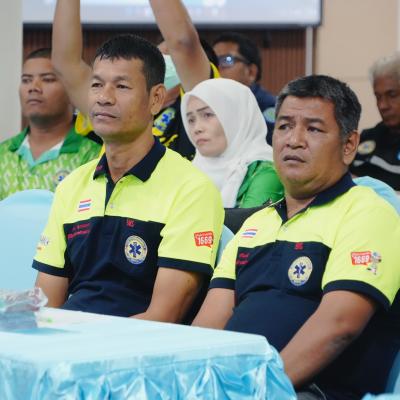 พร้อมด้วย นายแพทย์ภควัต จุลทอง แพทย์อำนวยการศูนย์รับแจ้งเหตุและสั่งการ อบจ.สงขลา / ผู้แทนจากหน่วยงานภาครัฐ ภาคเอกชน มูลนิธิ สมาคม / ภาคีเครือข่าย / หน่วยงานที่เกี่ยวข้องด้านการแพทย์ฉุกเฉินในพื้นที่จังหวัดสงขลา และเจ้าหน้าที่ที่เกี่ยวข้องเข้าร่วมประชุมฯ