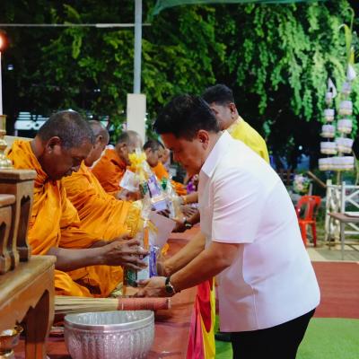 วันที่ 4 กรกฎาคม 2568 เวลา 19.00 น. นายสุพิศ พิทักษ์ธรรม นายกองค์การบริหารส่วนจังหวัดสงขลา เป็นประธานในพิธีหล่อเทียน สมโภชเทียนและถวายเทียนพรรษา ณ สำนักงานเทศบาลตำบลบ้านไร่ ตำบลบ้านพรุ อำเภอหาดใหญ่ จังหวัดสงขลา