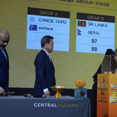 โอกาสนี้ นายกฯ สุพิศ ได้ให้เกียรติจับสลากแบ่งสายทีมชายในกรุ๊ป A และ B และทีมหญิง อีกด้วย