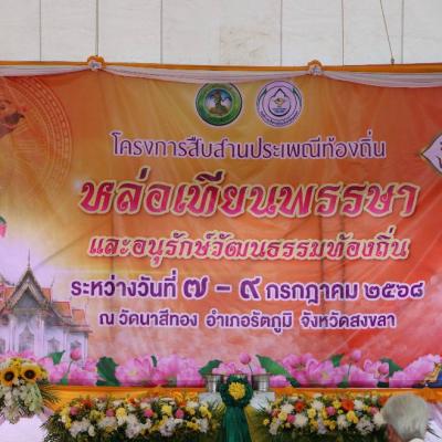 อบจ.สงขลา ร่วมกับ เทศบาลตำบลนาสีทอง วัดนาสีทอง ชุมชน และประชาชนในพื้นที่ จัดโครงการสืบสานประเพณีท้องถิ่น “หล่อเทียนพรรษาและอนุรักษ์วัฒนธรรมท้องถิ่น” ประจำปี 2568 ระหว่างวันที่ 7–9 กรกฎาคม 2568 ณ วัดนาสีทอง ตำบลเขาพระ อำเภอรัตภูมิ จังหวัดสงขลา เพื่อสืบสานวัฒนธรรมประเพณีอันดีงามและส่งเสริมพุทธศาสนาในท้องถิ่น โดยมุ่งเน้นให้เยาวชนและประชาชนร่วมกันเรียนรู้และอนุรักษ์ขนบธรรมเนียมประเพณีการหล่อเทียนพรรษา รวมทั้งสร้างความศรัทธาในพระพุทธศาสนา