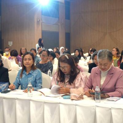 สำหรับกิจกรรมในวันนี้ เป็นกิจกรรมหลักสูตรที่ 4 การออกแบบผลิตภัณฑ์ผ้าไทยให้ทันสมัย โดยกิจกรรมมีการสัมนาด้วยกัน 3 หัวข้อดังนี้ หัวข้อที่ 1 ภูมิปัญญาท้องถิ่นสู่แนวคิดร่วมสมัย