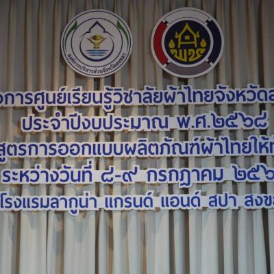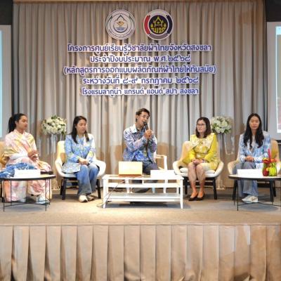 - หลักสูตรที่ 4 การออกแบบผลิตภัณฑ์ผ้าไทยให้ทันสมัย จัดระหว่างวันที่ 8 - 9 กรกฎาคม 2568 ณ โรงแรมลากูน่า แกรนด์ โฮเทล แอนด์ สปา อำเภอเมืองสงขลา จังหวัดสงขลา