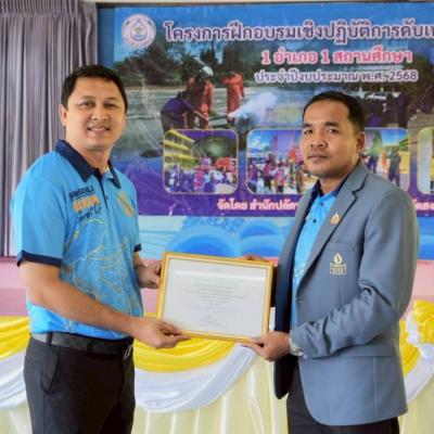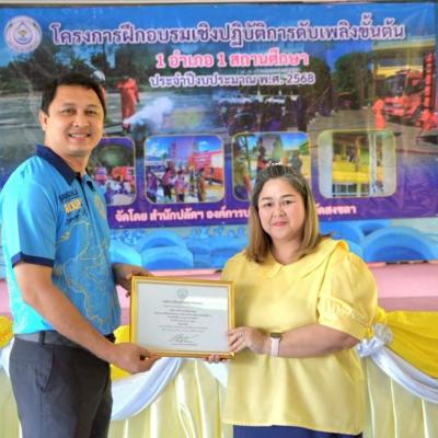 นายฉัตรเพชร ครุอำโพธิ์ รองนายกองค์การบริหารส่วนจังหวัดสงขลา เป็นประธานในพิธีเปิดโครงการฝึกอบรมเชิงปฏิบัติการดับเพลิงขั้นต้น 1 อำเภอ 1 สถานศึกษา ประจำปีงบประมาณ พุทธศักราช 2568 รุ่นที่ 2