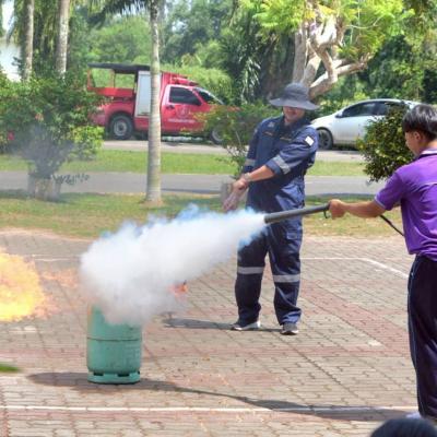 ตลอดการฝึกอบรมฯ มีนายเกรียงไกร ไชยมิตร นักป้องกันและบรรเทาสาธารณภัยชำนาญการ นายศิริวันไช สมทรง เจ้าพนักงานป้องกันและบรรเทาสาธารณภัยชำนาญงาน และบุคลากรงานป้องกันและบรรเทาสาธารณภัย องค์การบริหารส่วนจังหวัดสงขลา (ซึ่งได้รับการอนุญาตให้เป็นหน่วยงานฝึกอบรมการดับเพลิงขั้นต้นและฝึกซ้อมอพยพหนีไฟ ตามกฏกระทรวง พุทธศักราช 2555 จากกรมสวัสดิการคุ้มครองแรงงาน) เป็นวิทยากรบรรยายให้ความรู้ทั้งภาคทฤษฎีเกี่ยวกับแผนการป้องกันอัคคีภัยและภาคปฏิบัติการใช้อุปกรณ์ในการเผชิญเหตุ การระงับเหตุ และวิธีการอพยพหนีไฟ ฝึกซ้อมแผนอพยพหนีไฟ โดยใช้การจำลองสถานการณ์จริง