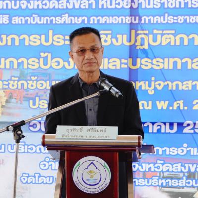 นายสุรสิทธิ์ ศรีอินทร์ ที่ปรึกษานายกองค์การบริหารส่วนจังหวัดสงขลา เป็นประธานเปิดโครงการประชุมเชิงปฏิบัติการบูรณาการด้านการป้องกันและบรรเทาสาธารณภัยและซักซ้อมแผนอุบัติเหตุหมู่จากสารเคมีรั่วไหล ประจำปีงบประมาณ พ.ศ.2568