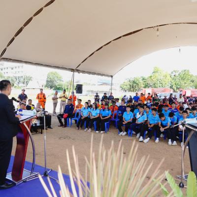 พร้อมด้วย หัวหน้าส่วนราชการในพื้นที่ องค์กรปกครองส่วนท้องถิ่นในพื้นที่จังหวัดสงขลา สถาบันการศึกษา อาสาสมัครกู้ภัย ภาคประชาชน บุคลากรเจ้าหน้าที่งานป้องกันและบรรเทาสาธารณภัยจากหน่วยงานภาคีเครือข่าย ผู้รับการฝึกอบรม และบุคลากรสำนักปลัดองค์การบริหารส่วนจังหวัดสงขลา เข้าร่วมในพิธีเปิดฯ