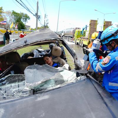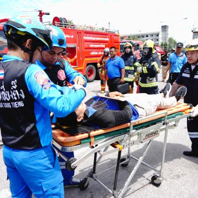 อบจ.สงขลา เดินหน้าซักซ้อมแผนอุบัติเหตุหมู่จากสารเคมีรั่วไหล พร้อมรับมือสถานการณ์จริง