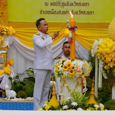 โดยผู้ว่าราชการจังหวัดสงขลา เป็นตัวแทนข้าราชการและพสกนิกรจังหวัดสงขลา จุดเทียนถวายพระพรชัยมงคล และนำกล่าวถวายราชสดุดีเฉลิมพระเกียรติและถวายพระพรชัยมงคล พร้อมกันนี้ร่วมร้องเพลงสรรเสริญพระบารมี และเพลงสดุดีจอมราชา