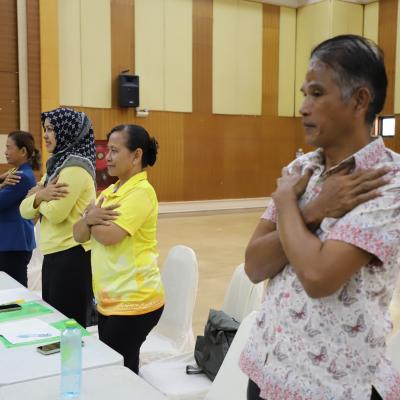 พร้อมด้วย นางสาวปรินดา ปาลาเร่ รองนายกองค์การบริหารส่วนจังหวัดสงขลา วิทยากร ผู้เข้าร่วมการอบรม และบุคลากรกองสาธารณสุของค์การบริหารส่วนจังหวัดสงขลาร่วมในพิธีเปิดฯ