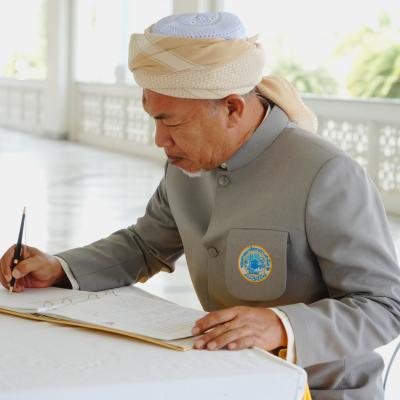 ก่อนเริ่มพิธีได้มีการอัญเชิญพระมหาคัมภีร์อัลกุรอาน โดย เมาลานา อับดลร่อซัก มหาชัย โดยในพิธี นายรุ่งโรจน์ และสุบ ได้กล่าวนำถวายพระพรชัยมงคล ความว่า ในศุภวาระอันเป็นมงคลยิ่งนี้ ข้าพระพุทธเจ้าทั้งหลาย ขอพระราชทานถวายพระพรชัยมงคล ด้วยความจงรักภักดี ขอฤทธานุภาพแห่งฮัลลอฮ์ องค์พระผู้อภิบาลแห่งสากลจักรวาลโปรดอภิบาลบำรุงรักษาใต้ฝ่าละอองธุลีพระบาทให้ทรงพระเกษมสำราญ ทรงสมบูรณ์ด้วยพระบุญญาธิการและพระพลานามัย มีพระราชประสงค์จำนงใดจงสัมฤทธิ์ผล พระชนมายุยิ่งยืนนาน เป็นมิ่งขวัญร่มเกล้าเหล่าพสกนิกรไทยสืบไป