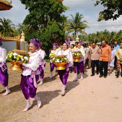โดยในลำดับพิธี รองผู้ว่าราชการจังหวัดสงขลา พร้อมด้วย รองนายกองค์การบริหารส่วนจังหวัดสงขลา นายอำเภอเทพา ร่วมขบวนกลองยาวนางรำนำแห่พานผ้าห่มงค์พระ พานดอกไม้ รอบพระอุโบสถ พิธีห่มผ้าพระสามองค์ พิธีถวายผ้าป่า ถวายจตุปัจจัย เครื่องไทยธรรม และร่วมสรงน้ำองค์จำลองพระสามองค์ เป็นอันเสร็จพิธี