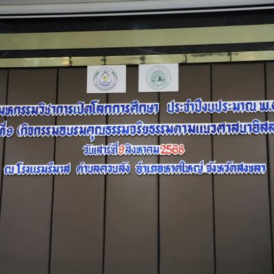 วันที่ 9 สิงหาคม 2568 ณ โรงแรมรีมาส ตำบลควนลัง อำเภอหาดใหญ่ จังหวัดสงขลา ดร.อับดลรอหมาน กาเหย็ม ที่ปรึกษานายกองค์การบริหารส่วนจังหวัดสงขลา เป็นประธาน ในพิธีเปิด โครงการมหกรรมวิชาการเปิดโลกการศึกษา รุ่นที่ 9 “กิจกรรมอบรมคุณธรรมจริยธรรมตามแนวทางศาสนาอิสลาม” พร้อมด้วย นายจำลอง บุญวรรโณ ส.อบจ.สงขลา อำเภอหาดใหญ่ เขต 3 ,สมาชิกสภาเทศบาลเมืองควนลัง แขกผู้มีเกียรติและผู้เข้าร่วมการอบรม ร่วมในพิธีเปิด โดยมี นายศักดิ์กรียา บิลแสละ ประธานกรรมการอิสลามประจำจังหวัดสงขลา กล่าวให้ โอวาทแก่ผู้เข้าร่วมอบรม และ นายฮำสะ สายสะหลำ นายกสมาคมครูสอนศาสนาอิสลามภาคฟัรดูอีน (ภาคบังคับ) จังหวัดสงขลา กล่าวรายงาน วัตถุประสงค์การจัดโครงการ