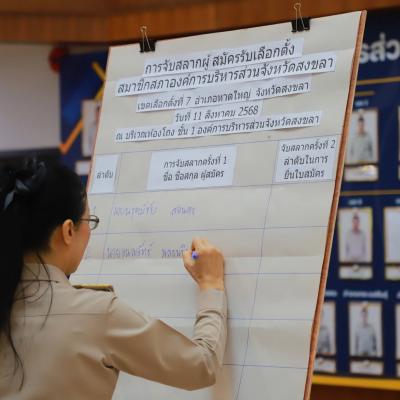 (วันที่ 11 สิงหาคม 2568) ภาพบรรยากาศ การรับสมัครการเลือกตั้งสมาชิกสภาองค์การบริหารส่วนจังหวัดสงขลา เขตเลือกตั้งที่ 7 อำเภอหาดใหญ่ จังหวัดสงขลา (แทนตำแหน่งที่ว่าง) วันแรก