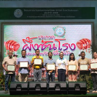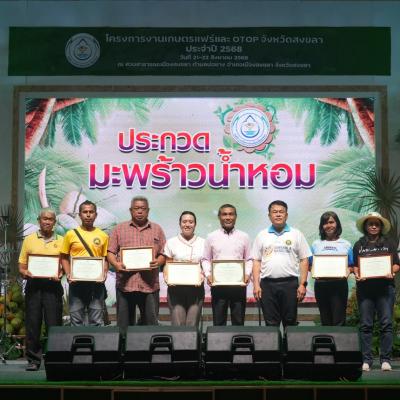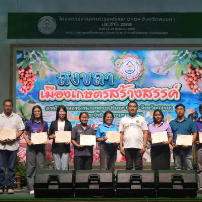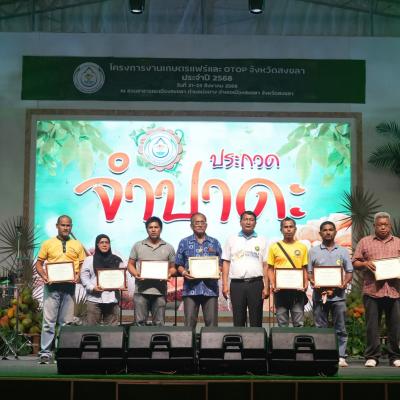 เมื่อวันที่ 23 สิงหาคม 2568 ณ สวนสาธารณะเมืองสงขลา ตำบลบ่อยาง อำเภอเมืองสงขลา จังหวัดสงขลา นายสุพิศ พิทักษ์ธรรม นายกองค์การบริหารส่วนจังหวัดสงขลา เป็นประธานในพิธีปิดโครงการฯ พร้อมมอบเกียรติบัตรแก่ผู้ชนะการประกวดและการแข่งขันด้านผลิตภัณฑ์ทางการเกษตร ได้แก่ การประกวดมะพร้าวน้ำหอม การประกวดกล้วยน้ำว้า การประกวดจำปาดะ การประกวดและแข่งขันผึ้งชันโรง รวมถึงผลิตภัณฑ์จากผึ้งชันโรง พร้อม ประธานสภา อบจ.สงขลา รองประธานสภา อบจ.สงขลา คณะผู้บริหาร หัวหน้าส่วนราชการ และประชาชนร่วมเป็นเกียรติในพิธีปิด การจัดโครงการในครั้งนี้มีเป้าหมายเพื่อกระตุ้นเศรษฐกิจในระดับชุมชน สร้างรายได้ให้แก่เกษตรกร ผู้ประกอบการ และส่งเสริมสินค้าท้องถิ่นให้เป็นที่รู้จักในวงกว้าง อบจ.สงขลา พร้อมเดินหน้าพัฒนาเศรษฐกิจ สังคม และคุณภาพชีวิตของประชาชนในจังหวัดสงขลาให้ยั่งยืนต่อไป
