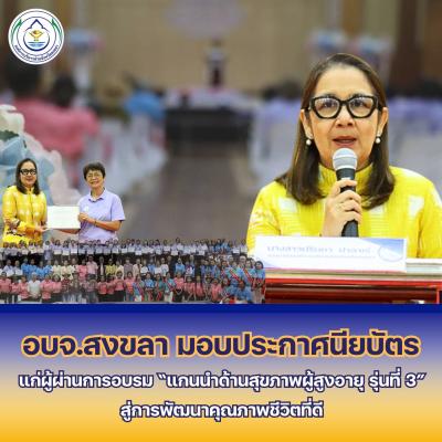 อบจ.สงขลา มอบประกาศนียบัตรแก่ผู้ผ่านการอบรม “แกนนำด้านสุขภาพผู้สูงอายุ รุ่นที่ 3” สู่การพัฒนาคุณภาพชีวิตที่ดี