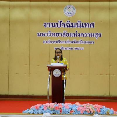 วันที่ 26 สิงหาคม 2568 ณ ห้องประชุมอาคารศรีเกียรติพัฒน์ องค์การบริหารส่วนจังหวัดสงขลา นางสาวปรินดา ปาลาเร่ รองนายกองค์การบริหารส่วนจังหวัดสงขลา เป็นประธานกล่าวแสดงความยินดี พร้อมมอบประกาศนียบัตรแก่ผู้ผ่านกิจกรรมอบรมเพื่อพัฒนาศักยภาพแกนนำด้านสุขภาพผู้สูงอายุ มหาวิทยาลัยแห่งความสุข รุ่นที่ 3 พร้อมด้วย คณะผู้บริหาร หัวหน้าส่วนราชการ ร่วมแสดงความยินดีฯ อบจ.สงขลา พร้อมสนับสนุนส่งเสริมการเรียนรู้ตลอดชีวิต และพร้อมที่จะพัฒนาคุณภาพชีวิตที่ดีของผู้สูงอายุให้มีความสุขครบทั้ง 5 มิติ สุขสบาย สุขสนุก สุขสง่า สุขสว่าง และสุขสงบ และสามารถดำเนินชีวิตร่วมในสังคมได้อย่างมีความสุข