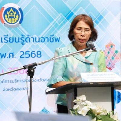 วันที่ 29 สิงหาคม 2568 ณ ศูนย์จำหน่ายสินค้าและผลิตภัณฑ์ชุมชน อบจ.สงขลา นางสุรียพรรณ์ ณ สงขลา ผู้เชี่ยวชาญพิเศษ อบจ.สงขลา เป็นประธานเปิดโครงการ “ศูนย์ส่งเสริมการเรียนรู้ด้านอาชีพ” ประจำปี 2568 โดยมีผู้บริหารท้องถิ่น ข้าราชการ อาจารย์ นักศึกษา และแขกผู้มีเกียรติร่วมงาน