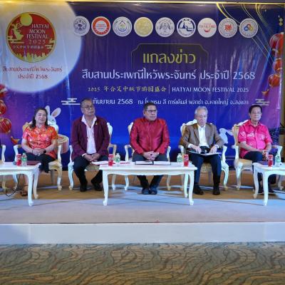 งาน “สืบสานประเพณีไหว้พระจันทร์ ประจำปี 2568” ระหว่างวันที่ 3-6 ตุลาคม 2568 ณ.โรงเรียนศรีนคนมูลนิธิ อำเภอหาดใหญ่ จังหวัดสงขลา โดยความร่วมมือของจังหวัดสงขลา องค์การบริหารส่วนจังหวัดสงขลา เทศบาลนครหาดใหญ่ การท่องเที่ยวแห่งประเทศไทย (ททท.) กงสุลใหญ่สาธารณรัฐประชาชนจีนประจำจังหวัดสงขลา สมาคมไทย-จีน จังหวัดสงขลา และกลุ่มเยาวชนไทยเชื้อสายจีนหาดใหญ่ เพื่ออนุรักษ์ประเพณีวัฒนธรรมสำคัญของชาวไทยเชื้อสายจีนที่สืบทอดมายาวนานให้คงอยู่คู่ชุมชน ปลูกฝังคุณค่าด้านความกตัญญู ความรัก ความผูกพันในครอบครัว ส่งเสริมการท่องเที่ยวและกระตุ้นเศรษฐกิจของอำเภอหาดใหญ่ จังหวัดสงขลา รวมทั้งสร้างบรรยากาศที่มีชีวิตชีวา ที่ดึงดูดนักท่องเที่ยวทั้งชาวไทยและต่างชาติให้เดินทางเข้ามาท่องเที่ยว ภายในงานพบกับการประดับโคมไฟเต็งลั้งกว่าพันดวง , โต๊ะไหว้พระจันทร์ขนาดใหญ่พร้อมพิธีไหว้พระจันทร์ตามประเพณีตั้งเดิม , ลานดวงจันทร์และจุดถ่ายรูปสีสันสดใส , ฟรีคอนเสิร์ตจากศิลปินชื่อดัง , การแสดง ศิลปวัฒนธรรมไทย-จีน พร้อมแสงสีเสียง , การประกวดและกิจกรรมที่สะท้อนขนบธรรมเนียมประเพณี และการออกร้านจำหน่ายอาหารและสินค้าท้องถิ่นโดยเฉพาะขนมไหว้พระจันทร์หลากหลายรูปแบบ