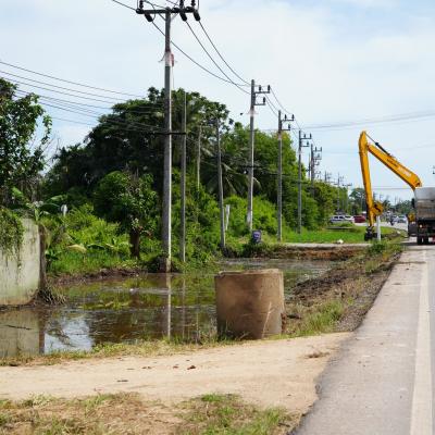 อบจ.สงขลา เร่งขุดลอกวัชพืช ที่กีดขวางทางระบายน้ำอย่างต่อเนื่องถนนสายบ้านท่าสะอ้าน - บ้านน้ำกระจาย ตำบลพะวง อำเภอเมืองสงขลา (ข้างโรงเรียนนวมินทราชูทิศทักษิณ)