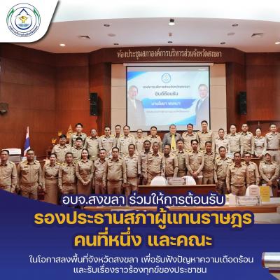 อบจ.สงขลา ร่วมให้การต้อนรับรองประธานสภาผู้แทนราษฎร คนที่หนึ่ง และคณะ ในโอกาสลงพื้นที่จังหวัดสงขลา เพื่อรับฟังปัญหาความเดือดร้อนและรับเรื่องราวร้องทุกข์ของประชาชน