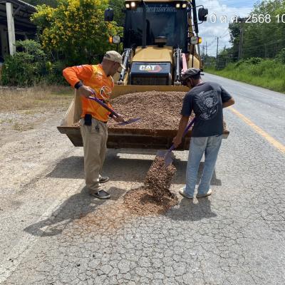 อบจ.สงขลา นำเครื่องจักรกลเข้าดำเนินงานซ่อมถนนสายบ้านย่านยาว ตำบลทุ่งลาน - บ้านเหนือ ตำบลคลองหอยโข่ง อำเภอคลองหอยโข่ง จังหวัดสงขลา