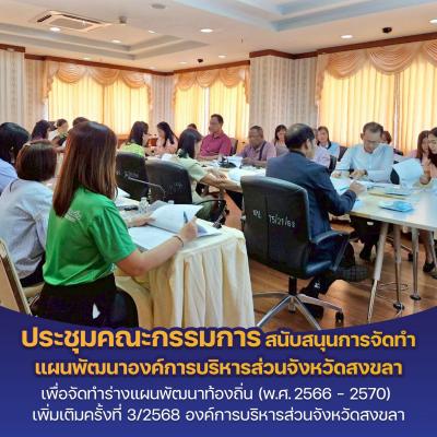 ประชุมคณะกรรมการสนับสนุนการจัดทำแผนพัฒนาองค์การบริหารส่วนจังหวัดสงขลา เพื่อจัดทำร่างแผนพัฒนาท้องถิ่น (พ.ศ.2566 - 2570) เพิ่มเติมครั้งที่ 3/2568 องค์การบริหารส่วนจังหวัดสงขลา