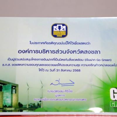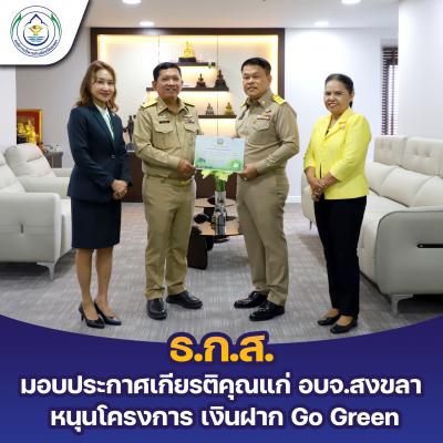 ธ.ก.ส. มอบประกาศเกียรติคุณแก่ อบจ.สงขลา หนุนโครงการ เงินฝาก Go Green