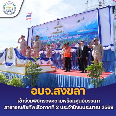 อบจ.สงขลา เข้าร่วมพิธีตรวจความพร้อมศูนย์บรรเทาสาธารณภัยทัพเรือภาคที่ 2 ประจำปีงบประมาณ 2569