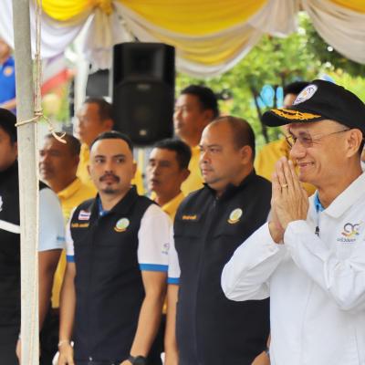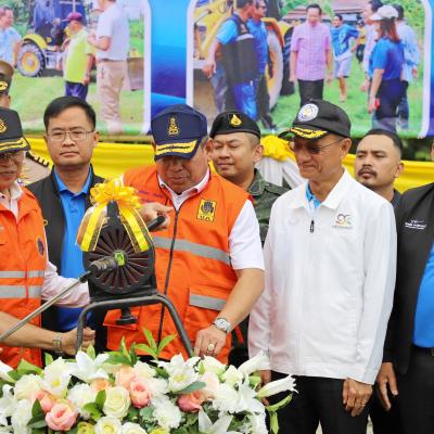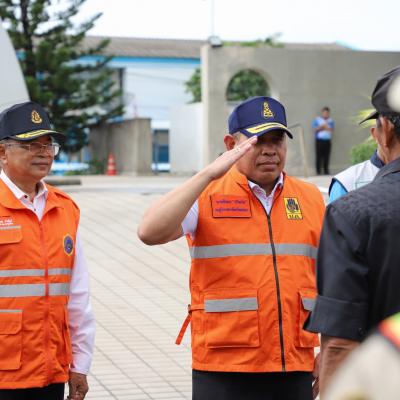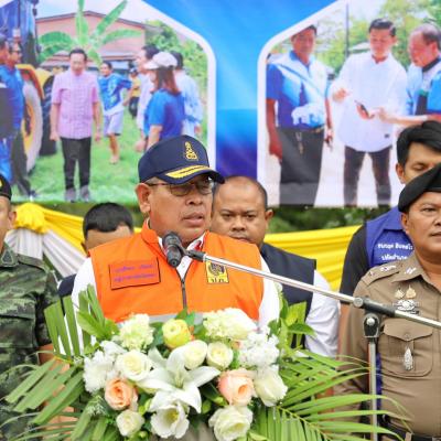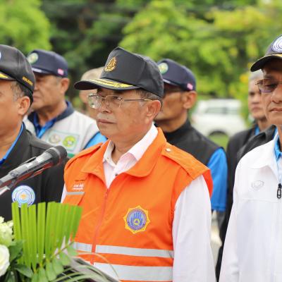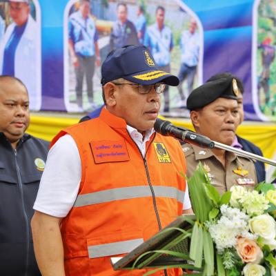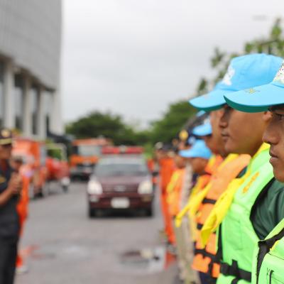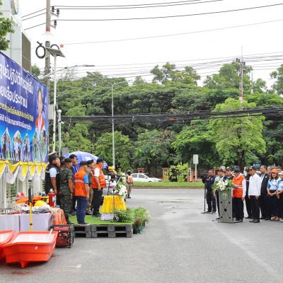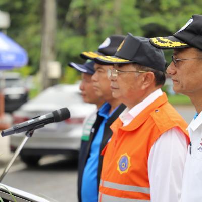จากนั้น นายสังคม เกิดก่อ รองผู้ว่าราชการจังหวัดสงขลา ได้หมุนไซเรนเพื่อเป็นสัญญานปล่อยขบวนรถพร้อมกำลังคน อุปกรณ์ ที่ได้รับการสนับสนุนจากหลายภาคส่วน อาทิ ทัพเรือภาคที่ 2 สงขลา , กองพันทหารปืนใหญ่ที่ 5 สงขลา , ศูนย์การฝึกนักศึกษาวิชาทหารมณฑลทหารบกที่ 42 , ศูนย์ป้องกันและบรรเทาสาธารณภัย เขต 12 สงขลา , สำนักงานทรัพยากรน้ำภาค 8 , องค์การบริหารส่วนจังหวัดสงขลา และเทศบาลนครสงขลา