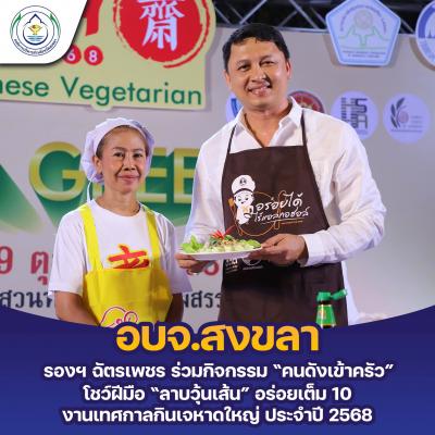รองฯ ฉัตรเพชร ร่วมกิจกรรม "คนดังเข้าครัว" โชว์ฝีมือ “ลาบวุ้นเส้น” อร่อยเต็ม 10 งานเทศกาลกินเจหาดใหญ่ ประจำปี 2568