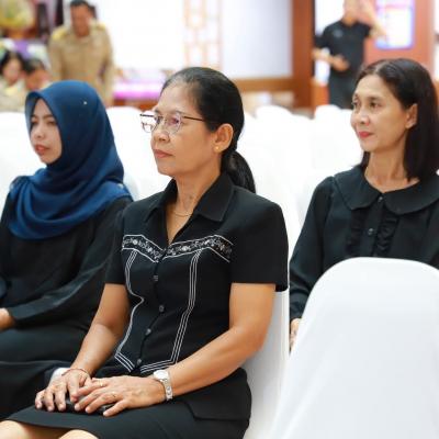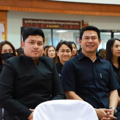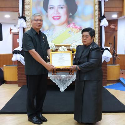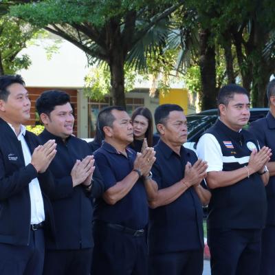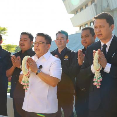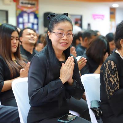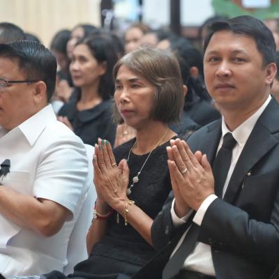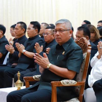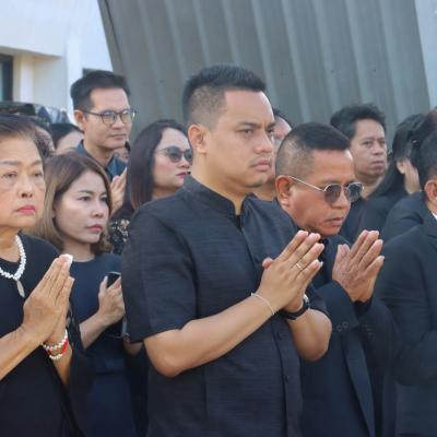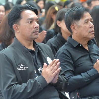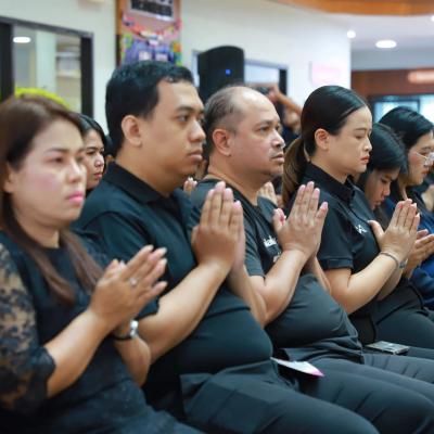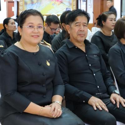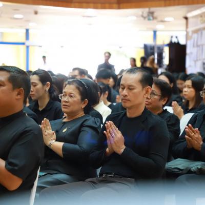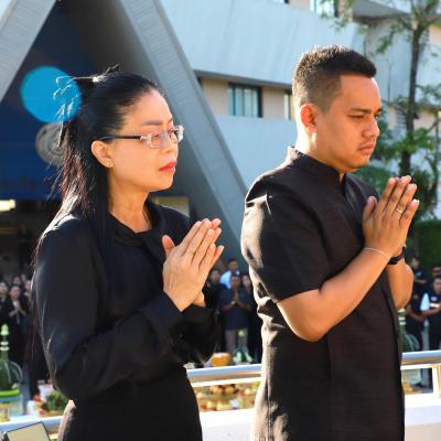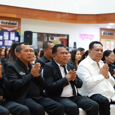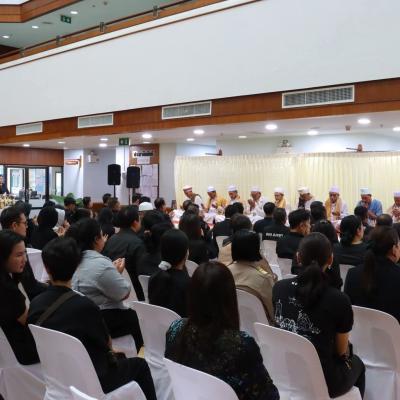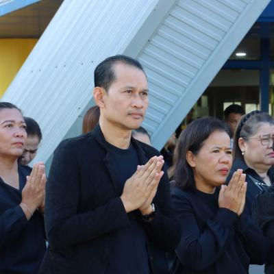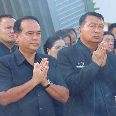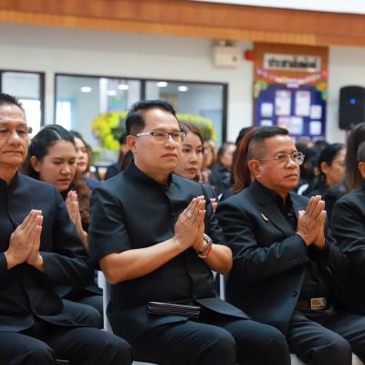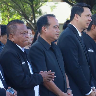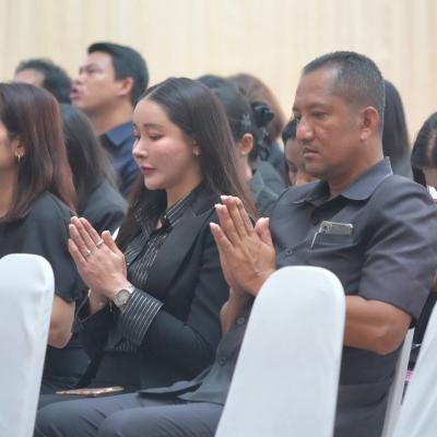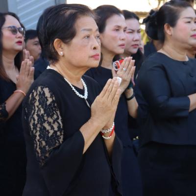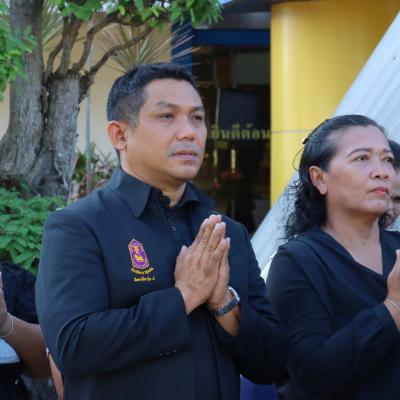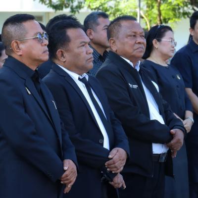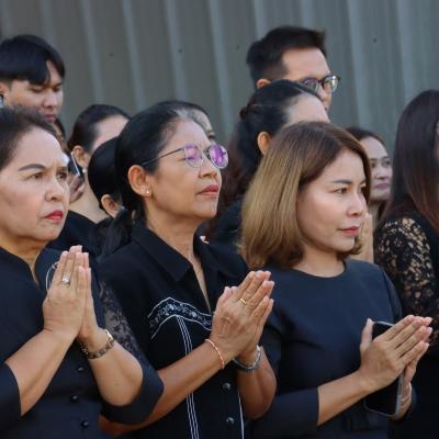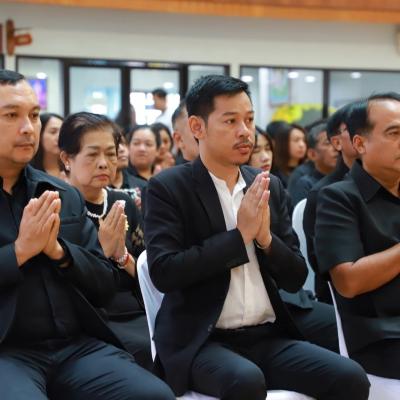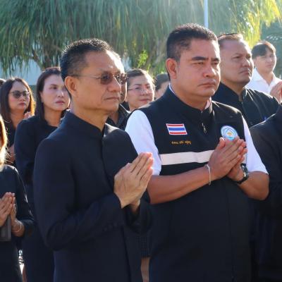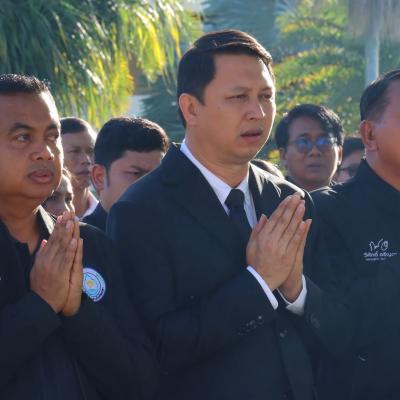 นายชูชีพ ธรรมเพชร รองผู้ว่าราชการจังหวัดสงขลา เป็นประธานฝ่ายฆราวาส พร้อมนำผู้เข้าร่วมยืนขึ้นเพื่อน้อมสำนึกในพระมหากรุณาธิคุณ สมเด็จพระนางเจ้าสิริกิติ์ พระบรมราชินีนาถ พระบรมราชชนนีพันปีหลวง และน้อมเกล้าน้อมกระหม่อมถวายอาลัยพระผู้เสด็จสู่สวรรคาลัย ณ บริเวณห้องโถง ชั้น 1 องค์การบริหารส่วนจังหวัดสงขลา ตำบลพะวง อำเภอเมืองสงขลา จังหวัดสงขลา