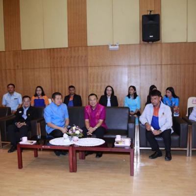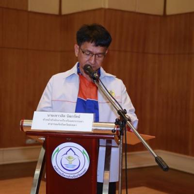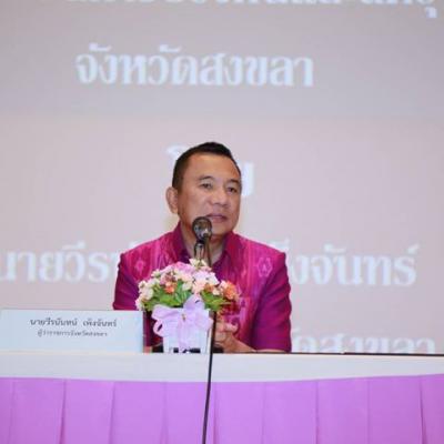 นายก อบจ.สงขลา กล่าวต้อนรับผู้เข้าร่วมในพิธีเปิดโครงการความปลอดภัยทางถนน จังหวัดสงขลา