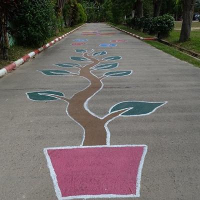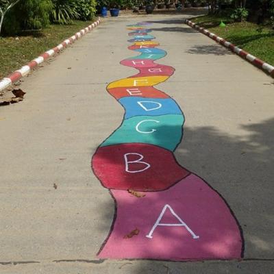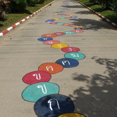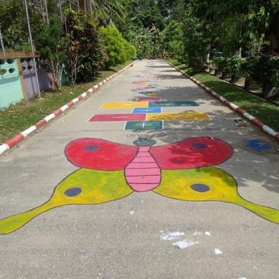 การปฏิบัติในทุกด้านไม่ว่าจะเป็นสนามเด็กเล่นเด็กเล็กและเด็กใหญ่ โดยเด็กเล็กเราก็ได้ออกแบบเป็นรั้วกั้นแบบตาข่ายรั้วเหล็กเพื่อความปลอดภัยของเด็กๆ ผลงานด้านศิลปะฝาผนัง โดยเฉพาะศิลปะบนพื้นถนนตั้งแต่เริ่มเข้าประตูโรงเรียน ออกแบบตั้งแต่เครื่องหมายบวกลบคูณหาร อักษรไทย ก ถึง ฮ ภาษาอังกฤษ A – Z เป็นฝีมือของนักเรียนจิตอาสา