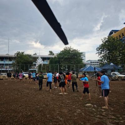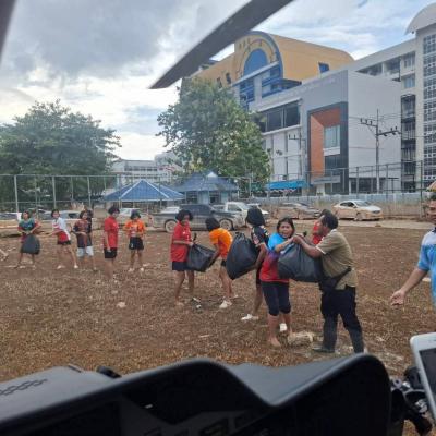 อบจ.สงขลา ลำเลียงข้าวกล่องพร้อมน้ำดื่ม เพื่อช่วยเหลือผู้ประสบภัยน้ำท่วม ณ โรงเรียนเทศบาล 1 เอ็งเสียงสามัคคี อ.หาดใหญ่ จ.สงขลา