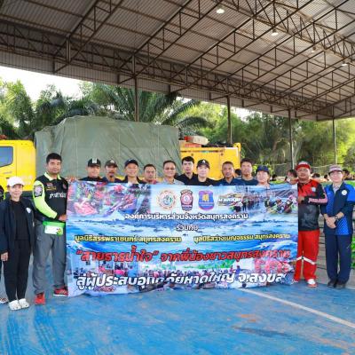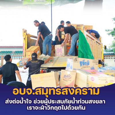 อบจ.สมุทรสงคราม นำโดย นายณัฏฐกิตติ์ เจียรนัย รองนายกองค์การบริหารส่วนจังหวัดสมุทรสงคราม ร่วมส่งมอบน้ำใจ ช่วยเหลือพี่น้องผู้ประสบภัยน้ำท่วมจังหวัดสงขลา มอบสิ่งของอุปโภค–บริโภคที่จำเป็นต่อการดำรงชีพ