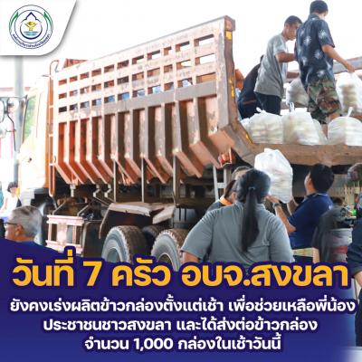 วันที่ 7 ครัว อบจ.สงขลา ทีมงานยังคงเร่งทำข้าวกล่องตั้งแต่เช้า รวม 1,000 กล่อง เพื่อส่งต่อให้ผู้ประสบภัยน้ำท่วมโดยเร็วที่สุด อบจ.สงขลา พร้อมเคียงข้างและช่วยเหลืออย่างเต็มกำลัง