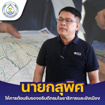 นายกสุพิศ ให้การต้อนรับ นายเกิดศักดิ์ ยะโสธร รองอธิบดีกรมโยธาธิการและผังเมือง ในโอกาสลงพื้นที่ติดตามการดำเนินงานของเครื่องจักรในภารกิจฟื้นฟูเมืองหาดใหญ่จากเหตุการณ์อุทกภัย