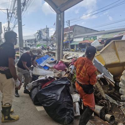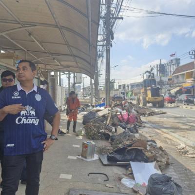 อบจ.สงขลา ติดตามความคืบหน้าภารกิจฟื้นฟูเมืองหาดใหญ่ (ถนนธรรมนูญวิถี)