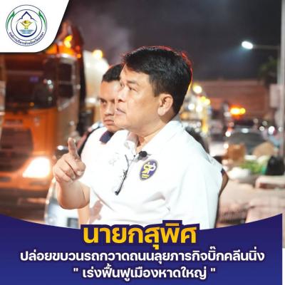 อบจ.สงขลา ส่งขบวนรถกวาดดูดฝุ่นถนนทำความสะอาดถนนเพชรเกษม (แยกคอหงส์-แยกควนลัง) "เร่งพื้นฟูเมืองหาดใหญ่"