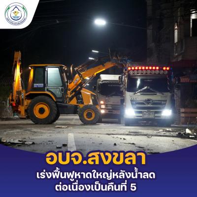 อบจ.สงขลา เร่งฟื้นฟูหาดใหญ่หลังน้ำลดต่อเนื่องเป็นคืนที่ 5