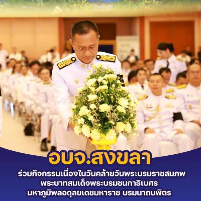 นายสุรสิทธิ์ ศรีอินทร์ ที่ปรึกษานายกองค์การบริหารส่วนจังหวัดสงขลา พร้อมด้วยข้าราชการ อบจ.สงขลา ร่วมในพิธีเจริญพระพุทธมนต์และทำบุญตักบาตรถวายพระราชกุศล และพิธีวางพุ่มดอกไม้ถวายบังคมเบื้องหน้าพระบรมฉายาลักษณ์พระบาทสมเด็จพระบรมชนกาธิเบศร มหาภูมิพลอดุลยเดชมหาราช บรมนาถบพิตร
