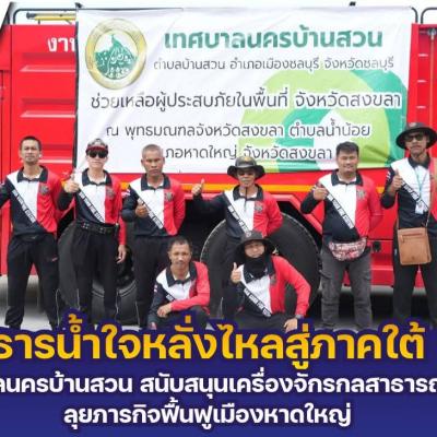 วันที่ 5 ธันวาคม 2568 นายฉัตรชัย อั้งลิ้ม นายกเทศมนตรีนครบ้านสวน ตำบลบ้านสวน อำเภอเมืองชลบุรี จังหวัดชลบุรี สนับสนุนเครื่องจักรกลสาธารณภัย พร้อมด้วยบุคลาการ ลุยภารกิจฟื้นฟูเมืองหาดใหญ่