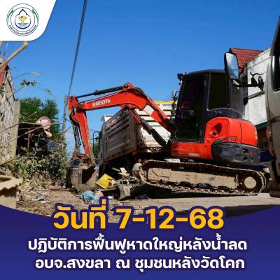 วันที่ 7-12-68 ปฏิบัติการฟื้นฟูหาดใหญ่หลังน้ำลด อบจ.สงขลา ณ ชุมชนหลังวัดโคก