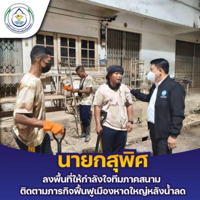อบจ.สงขลา ลงพื้นที่ให้กำลังใจทีมภาคสนาม ติดตามภารกิจฟื้นฟูเมืองหาดใหญ่ พื้นที่วัดโคกสมานคุณ และ ซโชคสมาน ซ.5,ซ.7