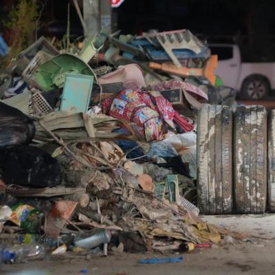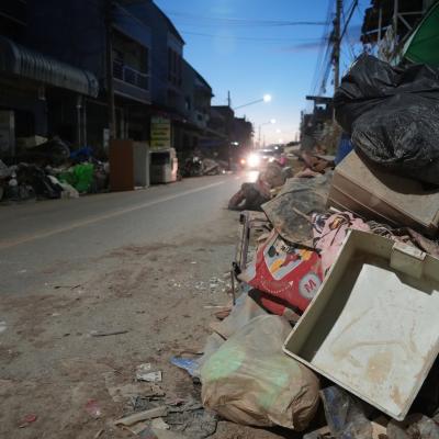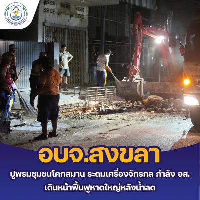 อบจ.สงขลา ปูพรมชุมชนโชคสมาน ระดมเครื่องจักรกล กำลัง อส. เดินหน้าฟื้นฟูหาดใหญ่หลังน้ำลด