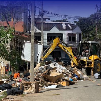 อบจ.สงขลา เดินหน้าภารกิจฟื้นฟูเมืองหาดใหญ่หลังน้ำลด พื้นที่ถนนพลพิชัยและชื่นอุทิศแก้วสมิทธ์พัฒนา ซ.2
